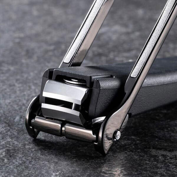 独自の旋回式レバーにより、従来のツメキリと比べて刃のすぐ近くを押すため、