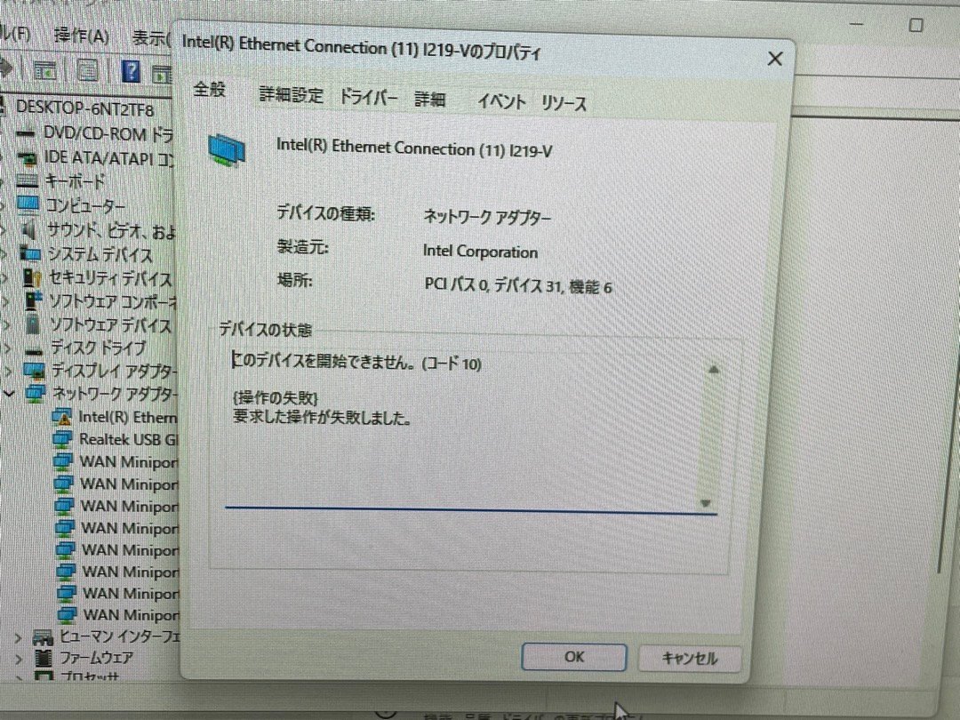 ・有線LANポートがLANを挿しても認識しないためジャンク(不良により、デバイスマネージャーにチェック項目有※画像参照)