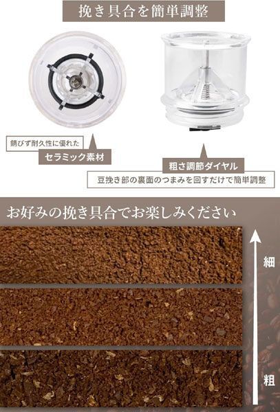 グッズライフ USB 充電式ポータブル電動コーヒーミル(G-LIFE001) 6点