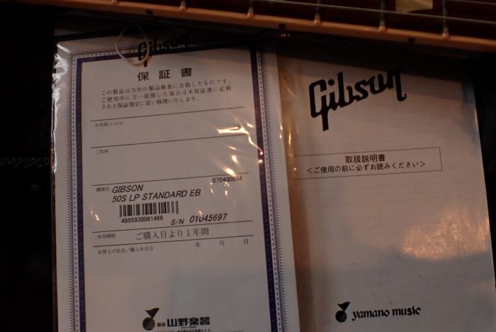 本体の保障書、山野楽器から購入のようで下記内容が記載されております。