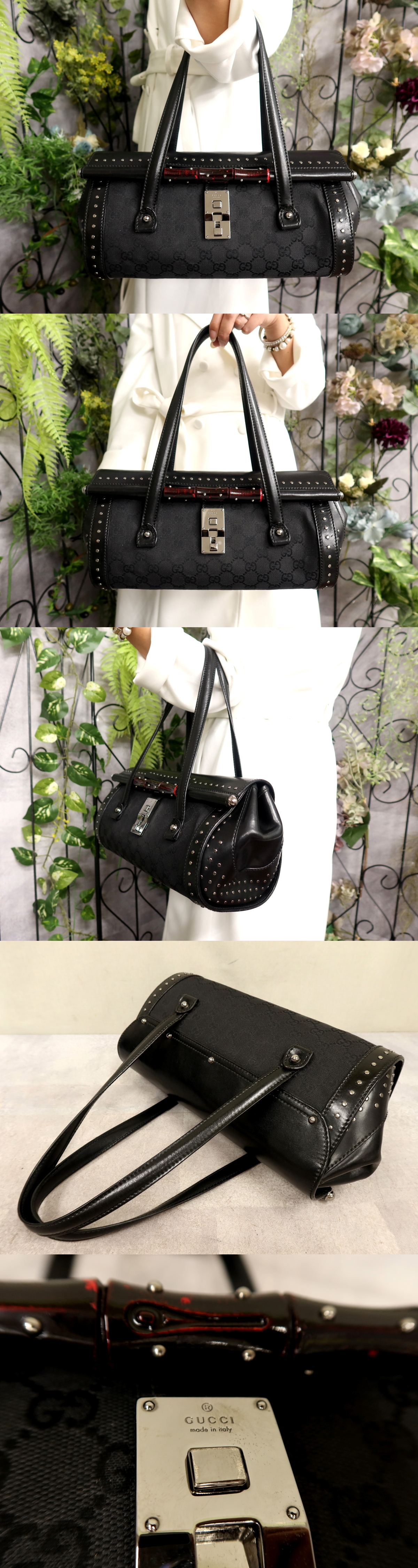 Product name: ●超美品●GUCCI グッチ●バンブー●スタッズ●GGキャンバス カーフ レザー 本革●ショルダー ハンド バッグ●黒●SV金具●かばん●Js61644