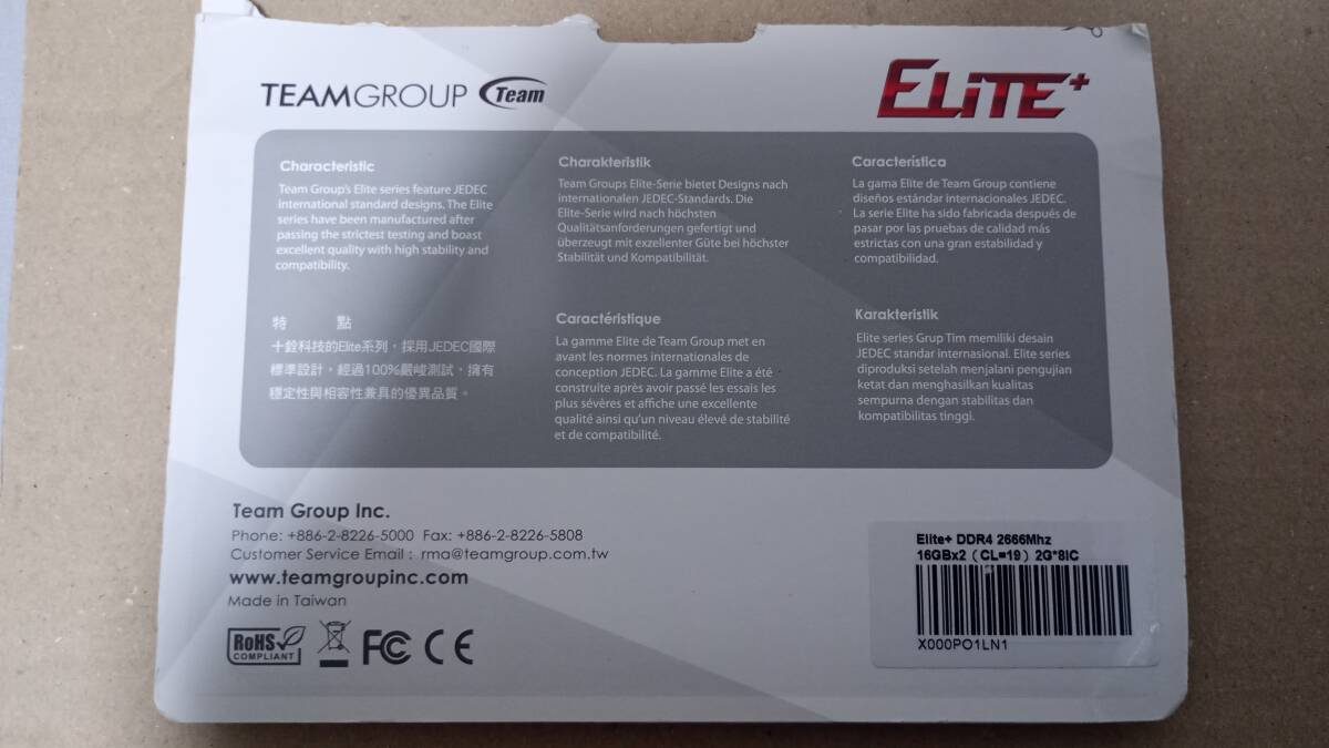Product name: DDR4メモリ「memtest86+確認済」 デスクトップPC用 Team DDR4 2666MHz PC4-21300 32GB (16GBx2枚) Elite Plus シリーズ
