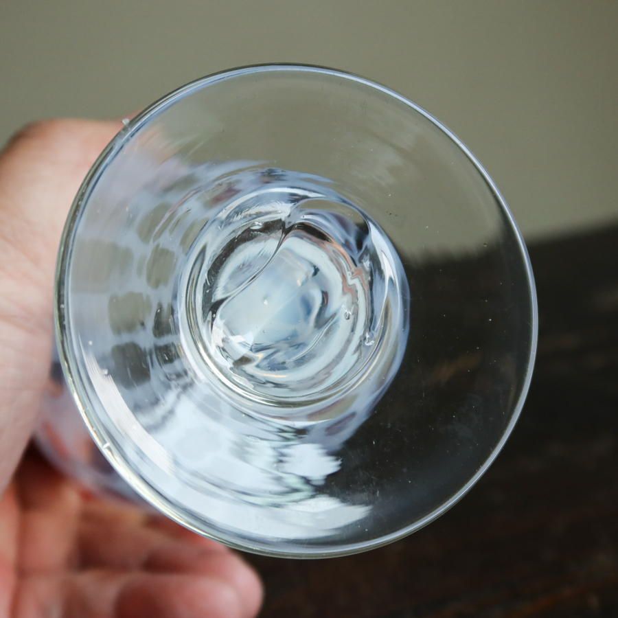 ●英国コレクター 大正ガラス 1 氷コップ 乳白 赤縁 水玉 棗型 脚付 検) 昭和 和ガラス レトロ アンティーク 明治 大正 硝子 気泡 電笠