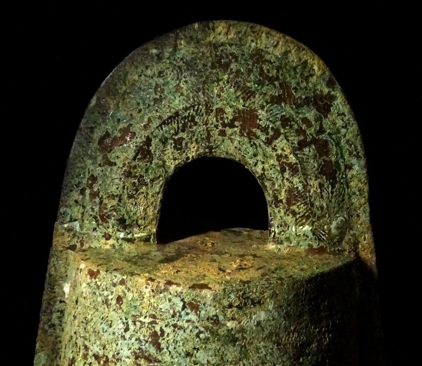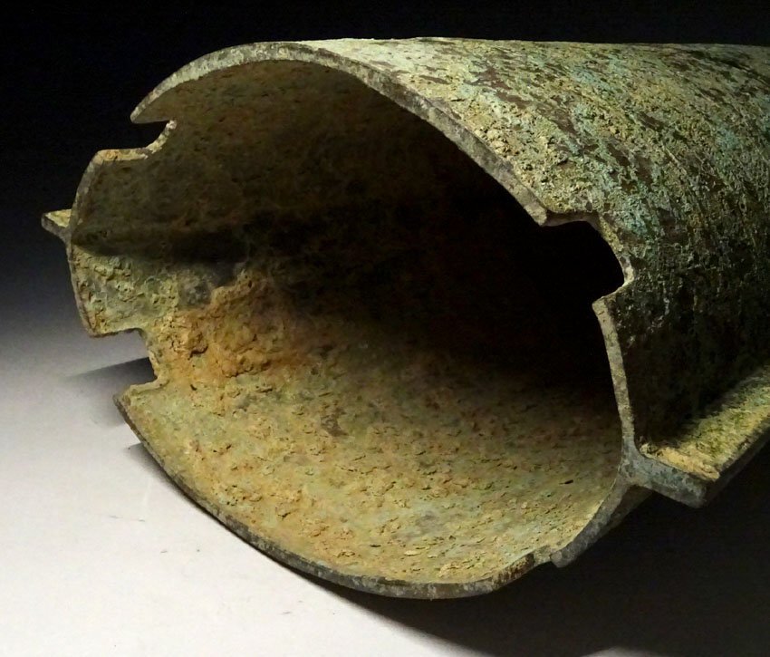 緑屋c■ 時代物 青銅器 袈裟襷狩猟文 銅鐸 高約51cm 重量7.34kg 唐物 時代物 i9/10-6366/26-a#120