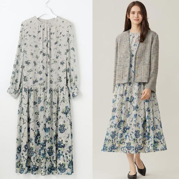 柔らかく滑らかなタッチが特徴のシフォンに華やかな花柄をプリントしたワンピースです。