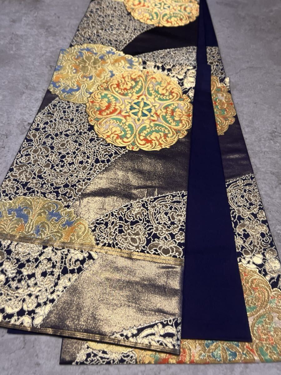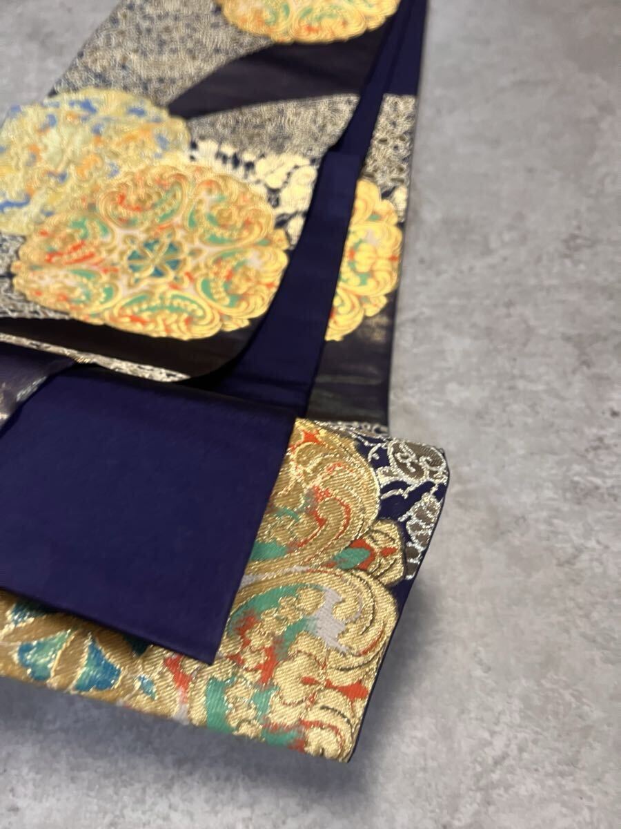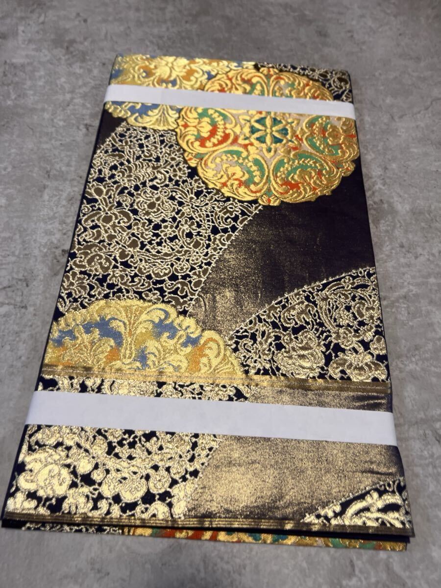 未使用 帯 袋帯 濃紫 正絹 きもの 金箔 文様 呉服