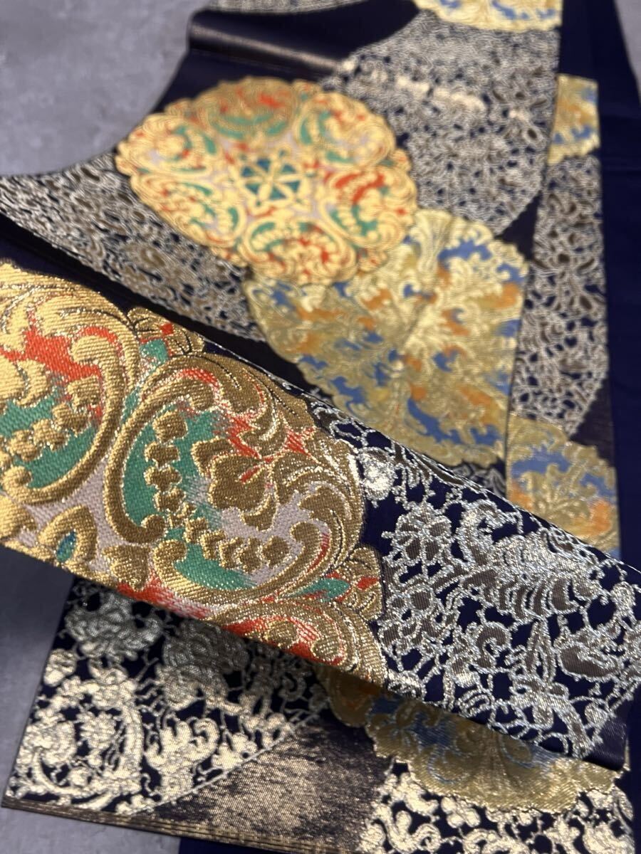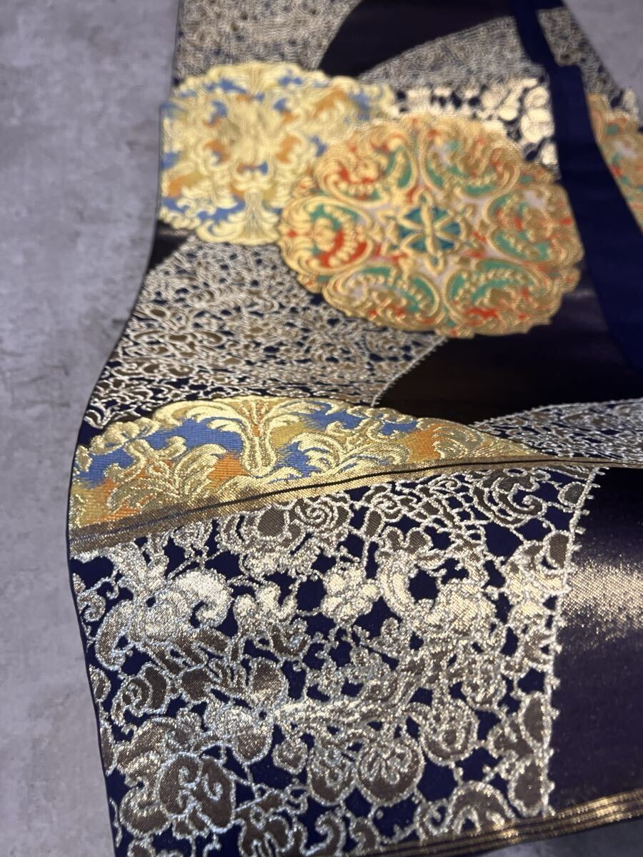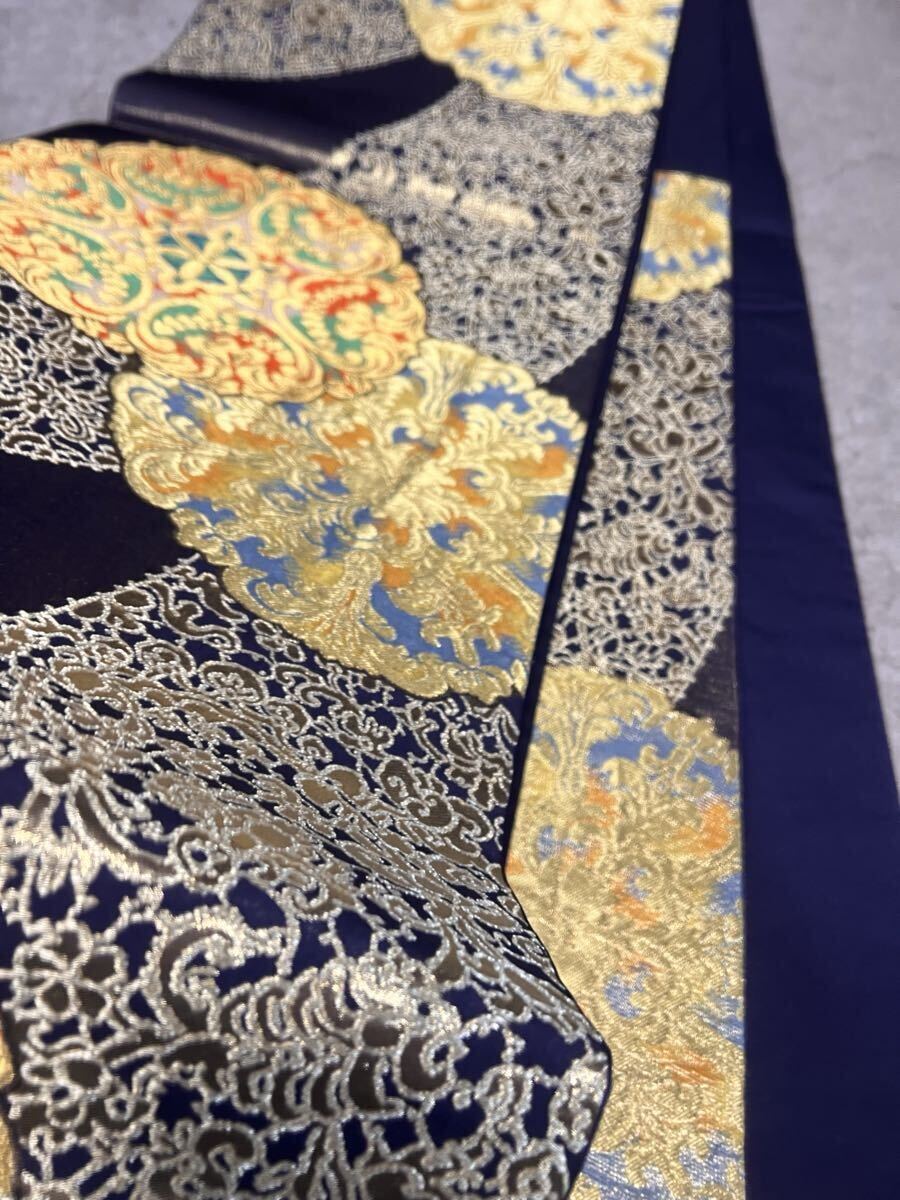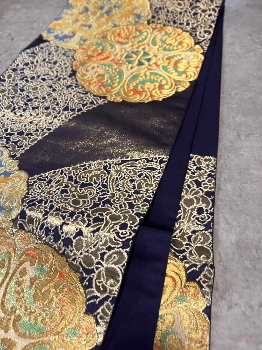 未使用 帯 袋帯 濃紫 正絹 きもの 金箔 文様 呉服