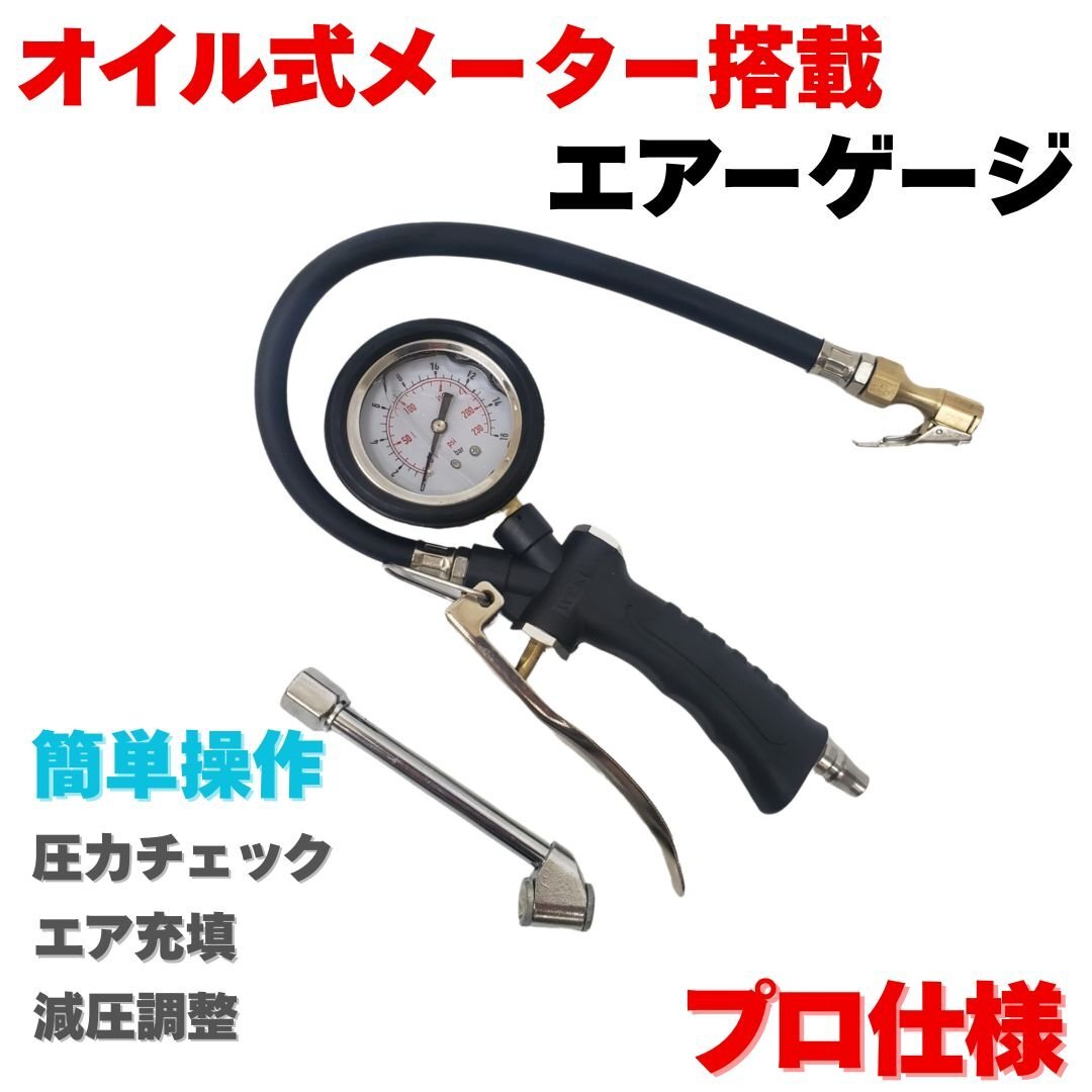 ■2way プロ仕様 オイル式メーター タイヤゲージ 片手操作可能 ボタンレス エアゲージ 加圧 減圧 測定 自動車用空気入れ