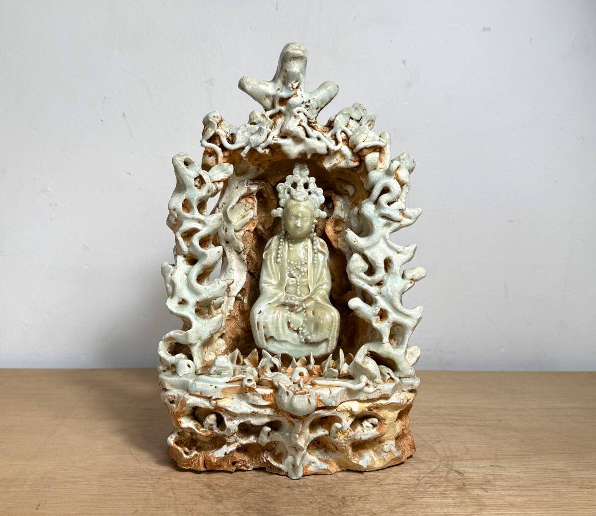 商品説明 京都⑫¥時代物 青磁 仏 観音 菩薩 高さ30.5cm  高麗青磁