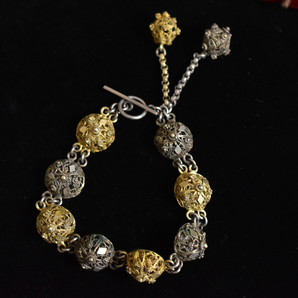 アンティーク銀線細工のフリンジ付きブレスレットです。
