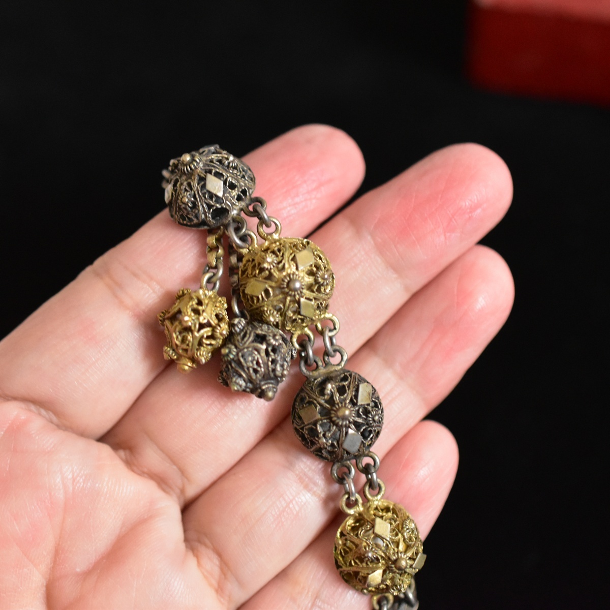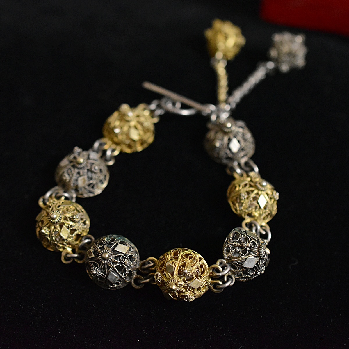 Product name: アンティーク 19世紀後期 立体的線細工の見事なフリンジ付きブレスレット 2色の地金 本物保証