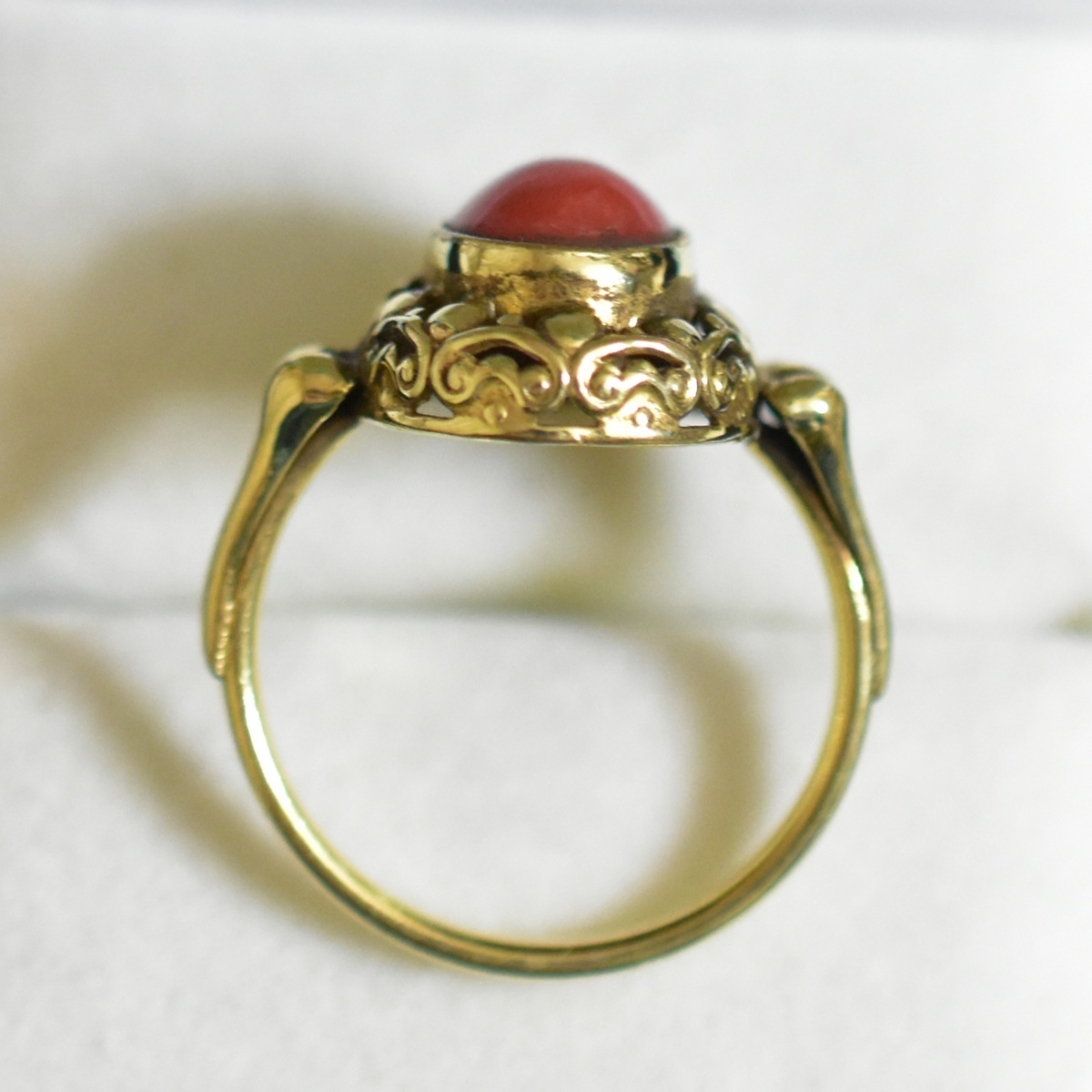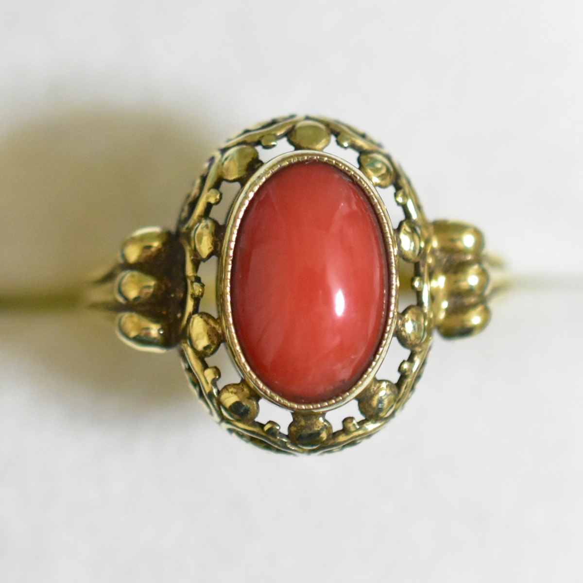 アンティーク/ヴィンテージ 地中海珊瑚/コーラルのGPリング/指輪 美しいシャンク 14号 本物保証