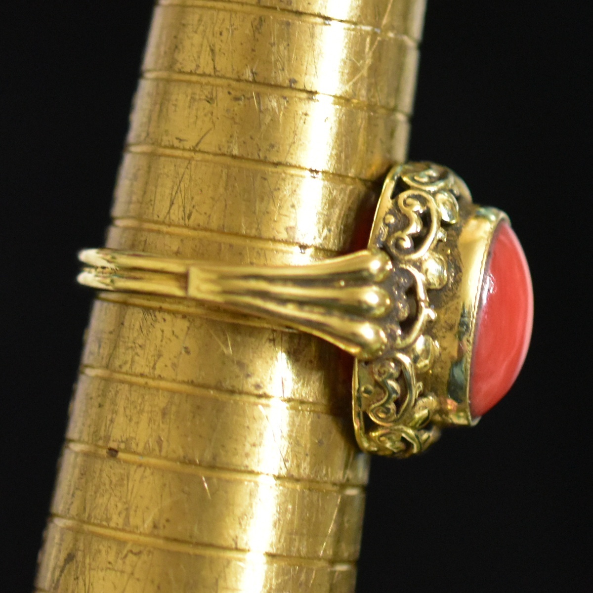 Product name: アンティーク/ヴィンテージ 地中海珊瑚/コーラルのGPリング/指輪 美しいシャンク 14号 本物保証