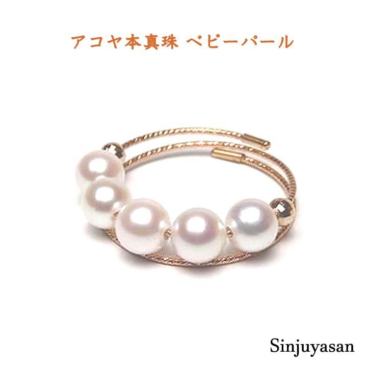 真珠屋さん 誰もが可愛い【フリーサイズ】最高の色!4.7~4.5mm 5個 アコヤ真珠K18PGリング 伊勢志摩産特選ベビーパール 18金 新品