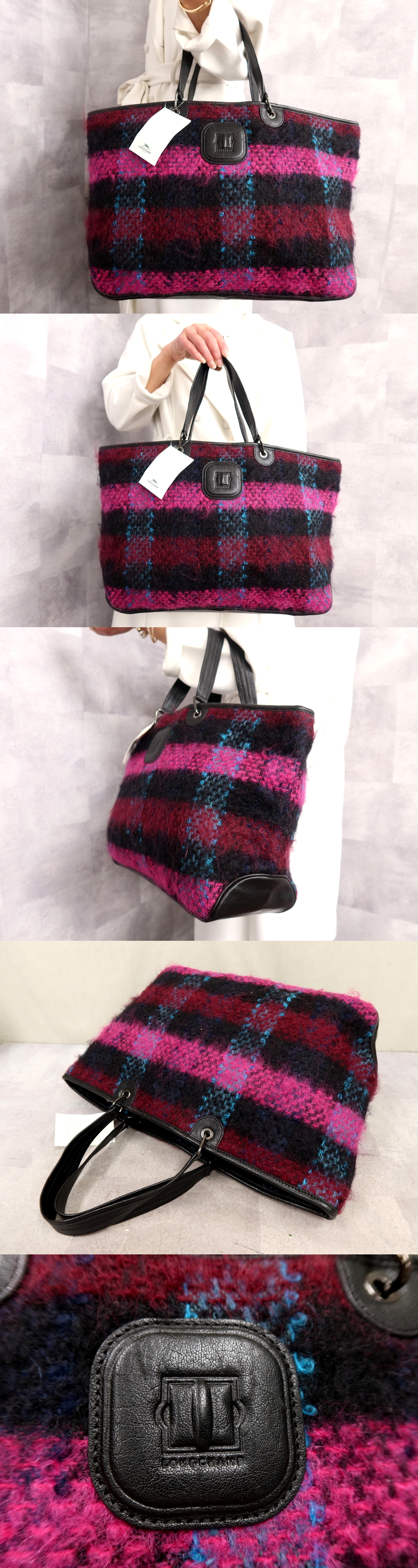 Product name: ●超美品●Longchamp ロンシャン●チェック柄●モヘア カーフ レザー 本革●トート バッグ●黒 ピンク ブルー ボルドー●A4 収納●Js64211