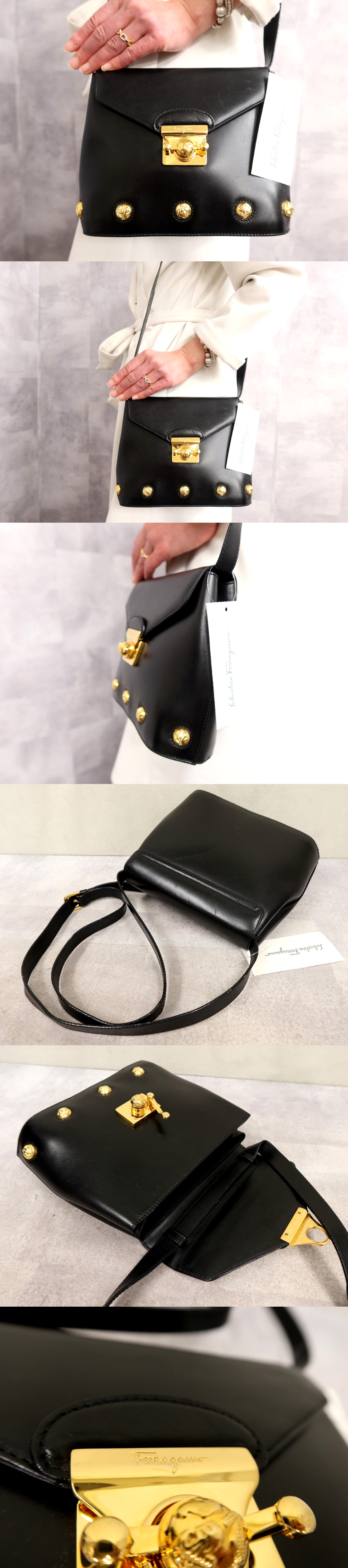 Product name: ●超美品●Salvatore Ferragamo フェラガモ●ヒールモチーフ●カーフ レザー 本革●ショルダー バッグ●黒●G金具●ヴィンテージ●Js65479