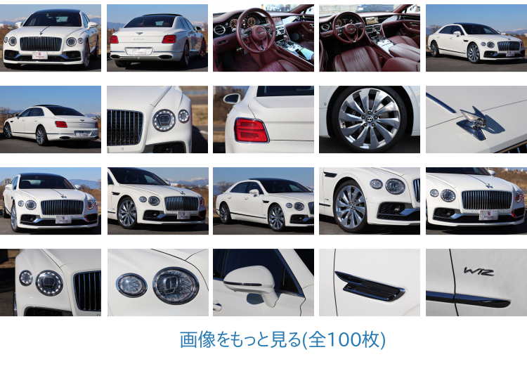 車両状態コメント内外装共に綺麗なコンディションをキープした一台です。外装はクールホワイト。ラグジュアリーカー代表のフライングスパーに光り輝くホワイトボディはまさにベストマッチではないでしょうか。内装はホットスパー(赤)で、こちらも目立つような汚れ、使用感のない綺麗な状態です。