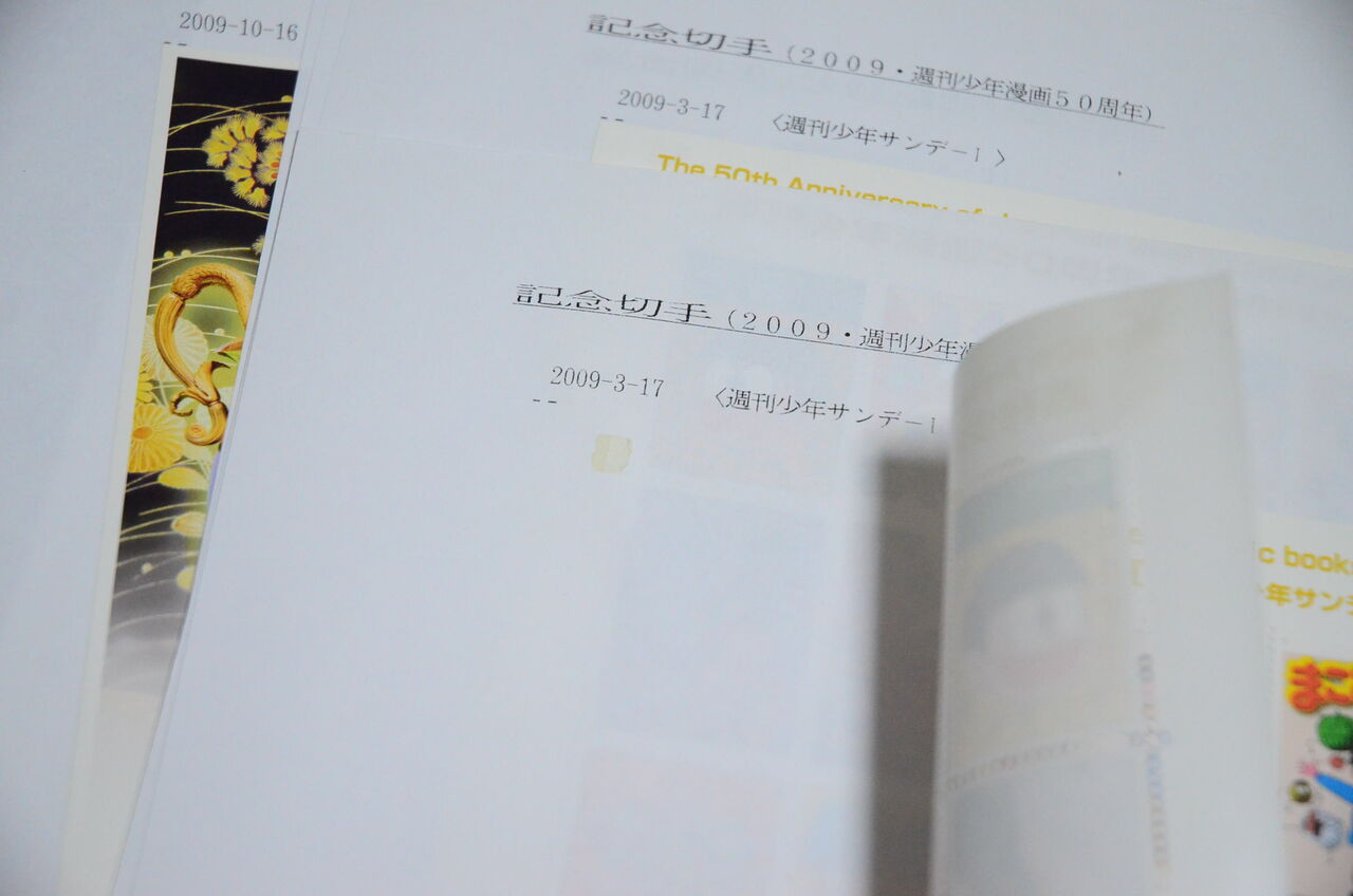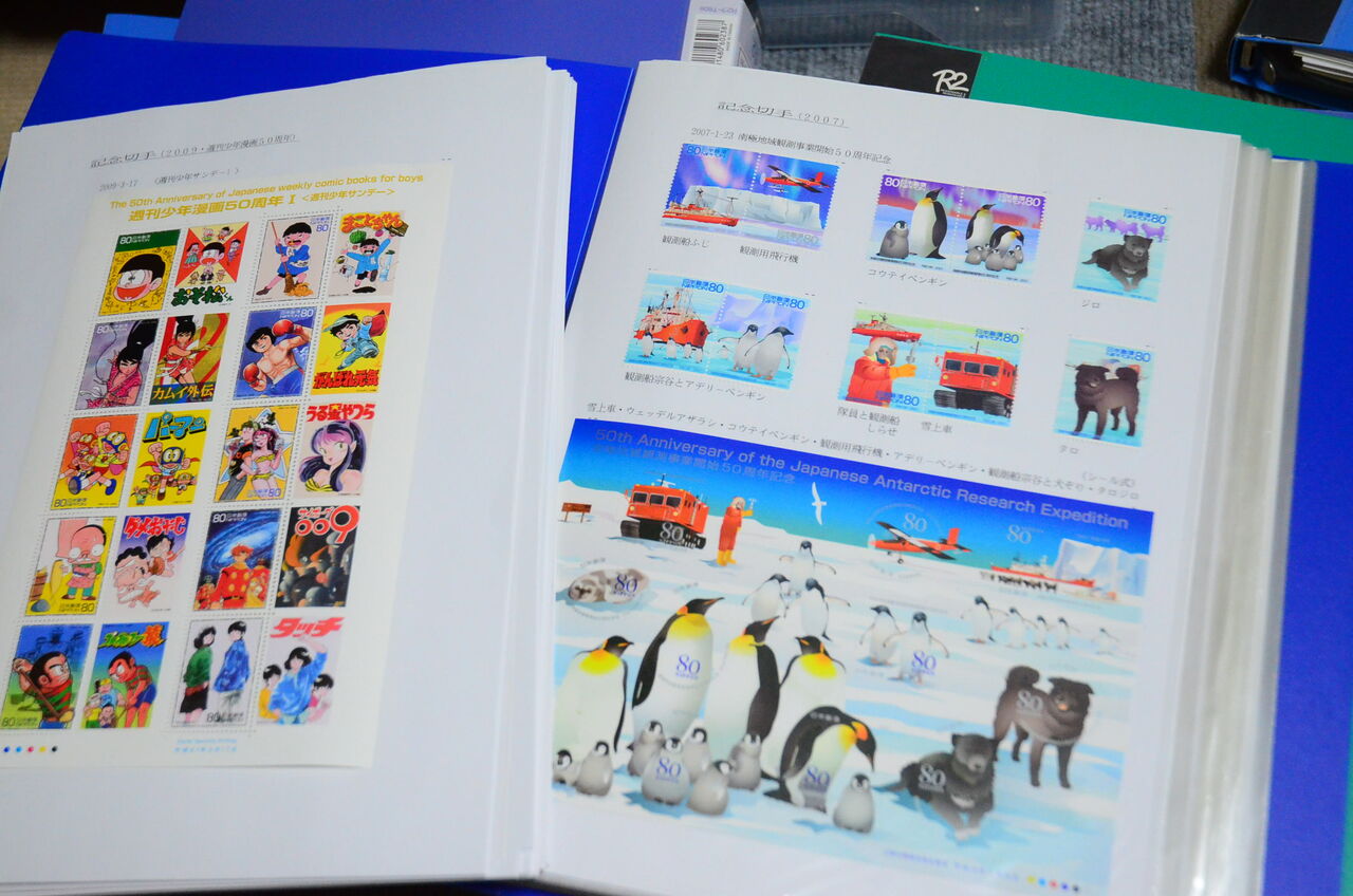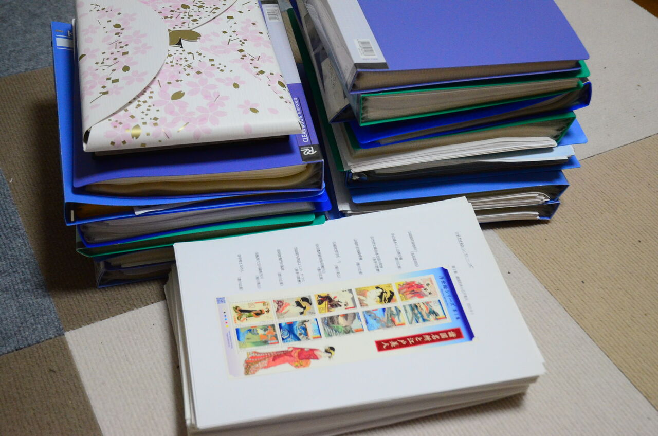 ほとんどが台紙に貼られている状態ですが、切手の上の部分にはがしやすい両面テープのような物で止められています