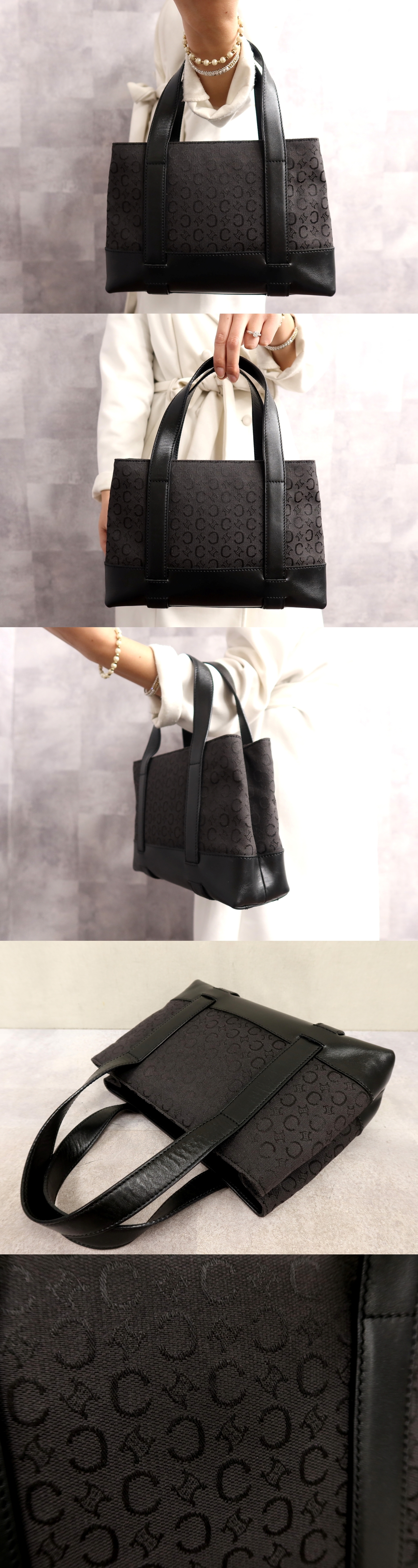 Cマカダム キャンバス カーフ レザー トート ハンド バッグ