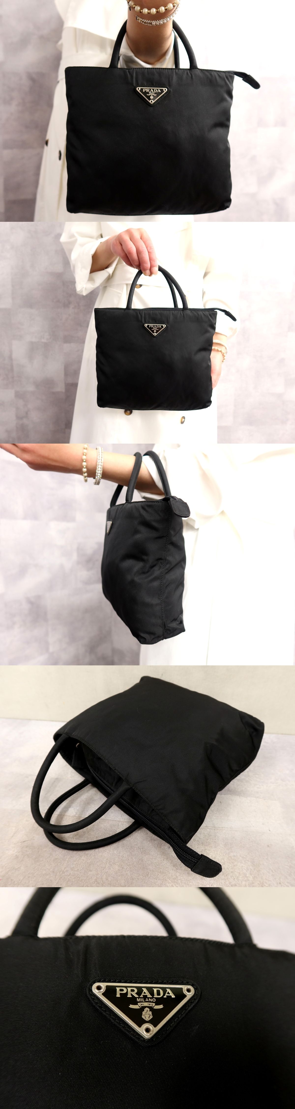 Store ●超美品●PRADA プラダ●三角ロゴプレート●ポコノ ナイロン●ミニ ハンド バッグ●黒●シルバー金具●イタリア製●収納 かばん●Js66679