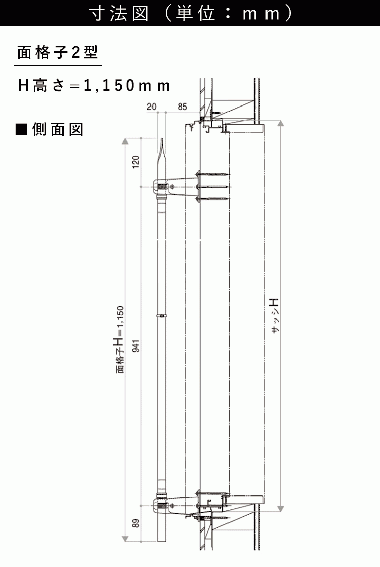 Product name: 面格子 YKK おしゃれ アルミ 防犯対策 シャローネ 2型 985 x 1150