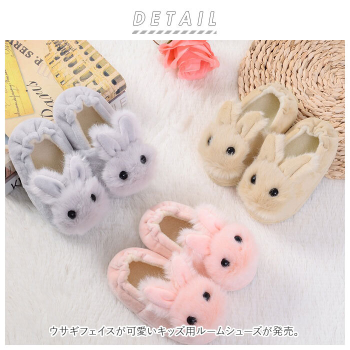 商品説明・・ウサギフェイスが可愛いキッズ用ルームシューズが発売。