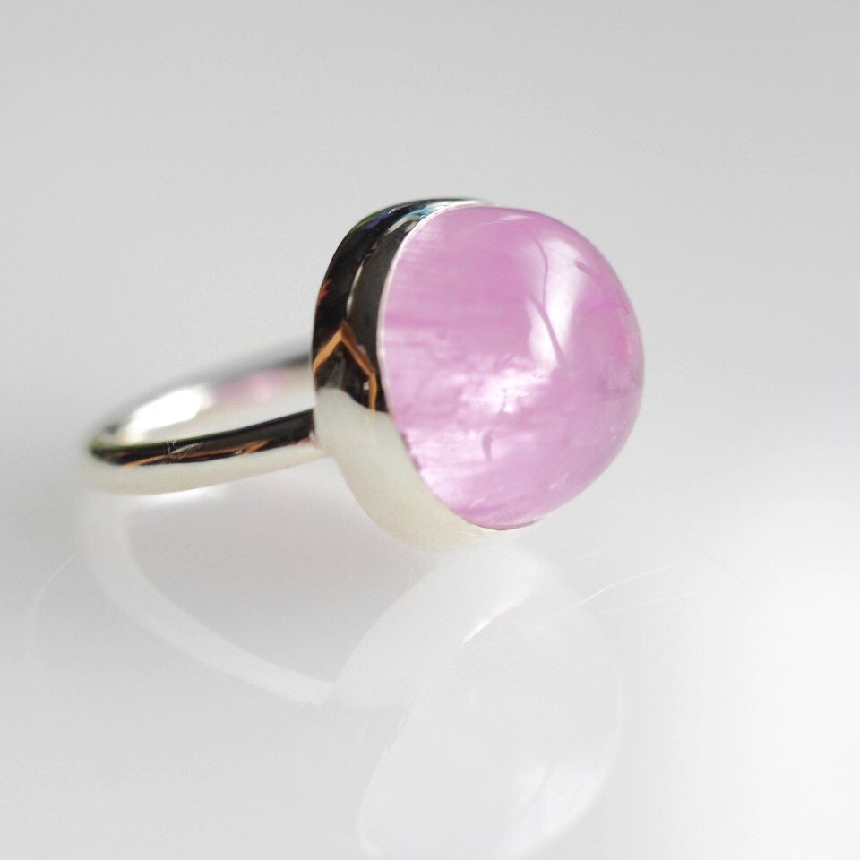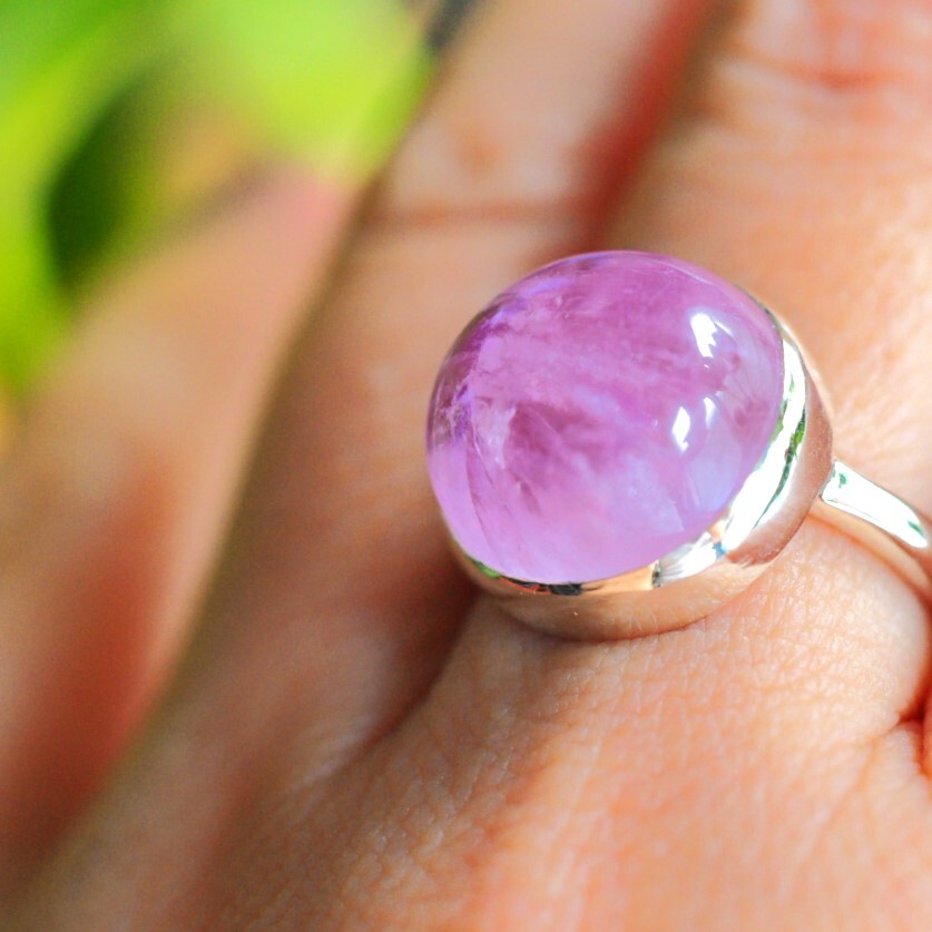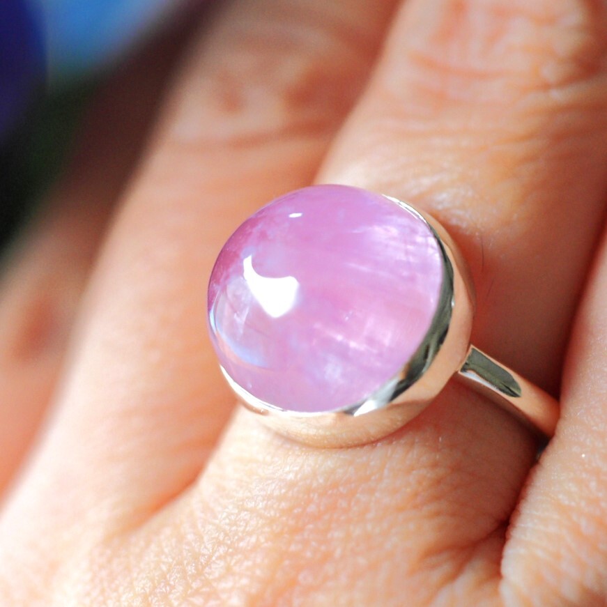 クンツァイトは独特の輝きを放ち、美しさが一層引き立ちます。