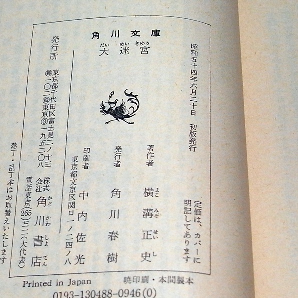 Product name: ●横溝正史 大迷宮 (初版・角川文庫)