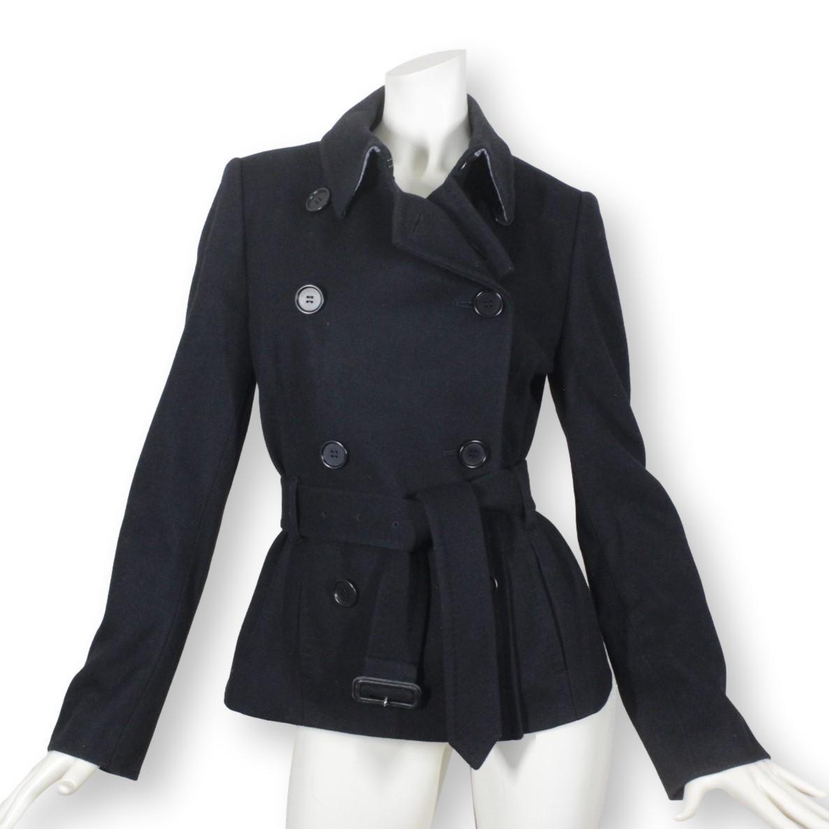 21【美品】ポールスミス ブラック ショートコート 42 レディース L ブラック 黒 ベルト付き カシミヤ入り tqe Paul Smith BLACK ★美品★