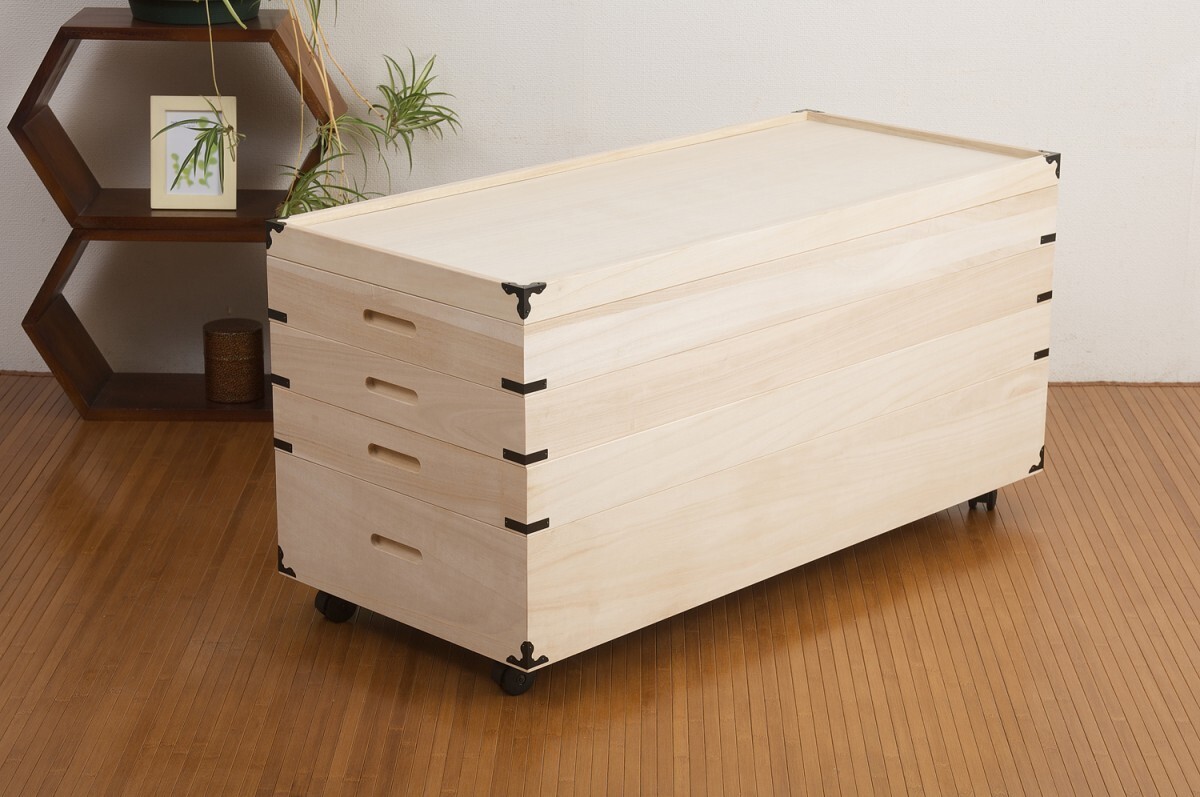 送料無料(一部地域を除く)0031hi 日本製 / キャスター付:桐 衣装箱 4段 / 着物 収納 国産 クローゼット 衣類保管