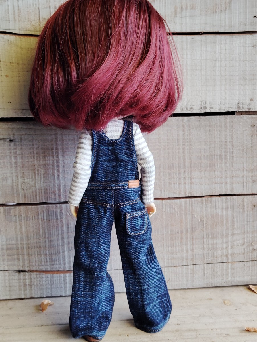 デニムオーバーオールUSED加工111 ネオブライス リカちゃん オビツ ピュアニーモ ハンドメイド アウトフィット Blythe outfit