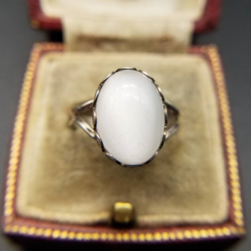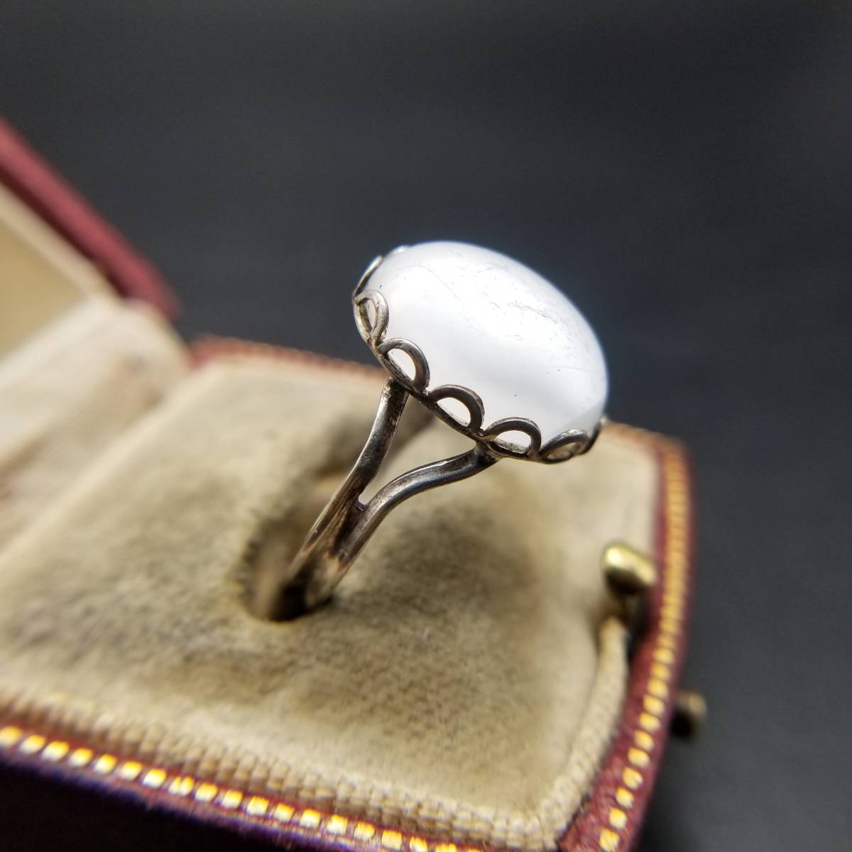 ムーンストーンガラス カボション 925 シルバー ヴィンテージ リング 銀 指輪 シンプル レトロ AMD