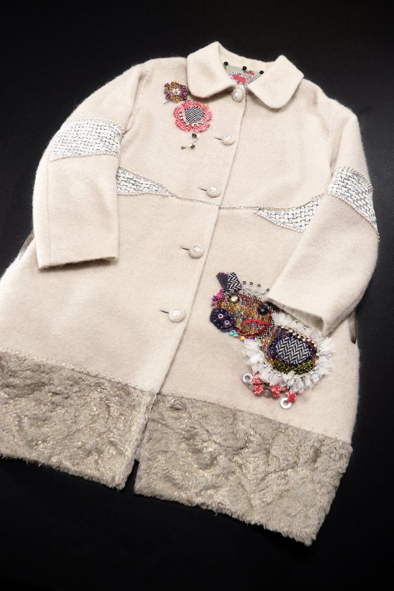 Product name: ☆訳有美品☆アルベロベロ/ブタさんアップリケウールモヘヤコート:ライトベージュ系xy535