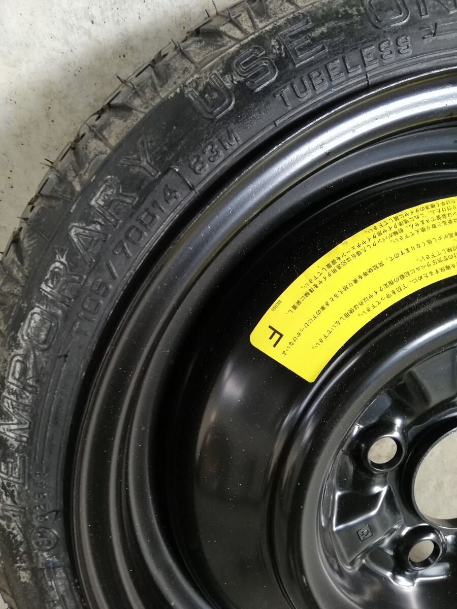 ★未使用★日産 純正マーチ ダンロップスペアタイヤ T105/70/D14 83M 4H 14×4T PCD100 テンパータイヤ 応急タイヤ 固定ボルト付★