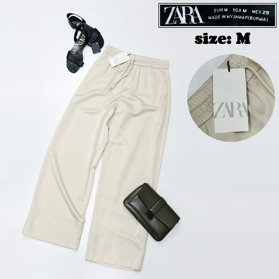 ZARA /M/ ベージュ ワイドパンツ レディース タグ付き カジュアル 通勤 フェミニン 大人可愛い ゴルフ アウトドア キャンプ デイリー ザラ