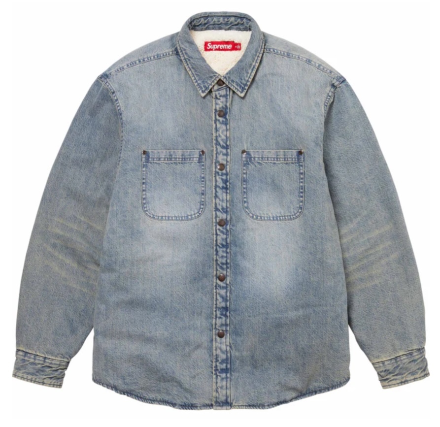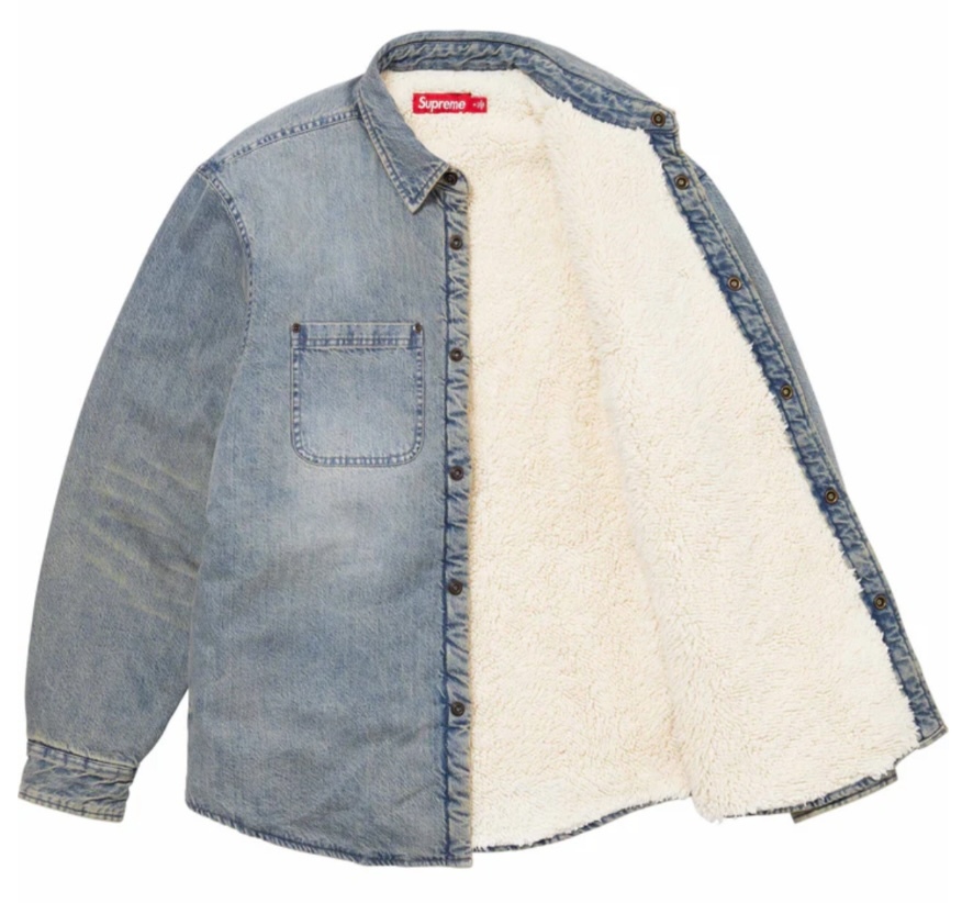 【新品】Supreme Faux Shearling Lined work shirt COLOR/STYLE:Washed Indigo Denim SIZE:Medium