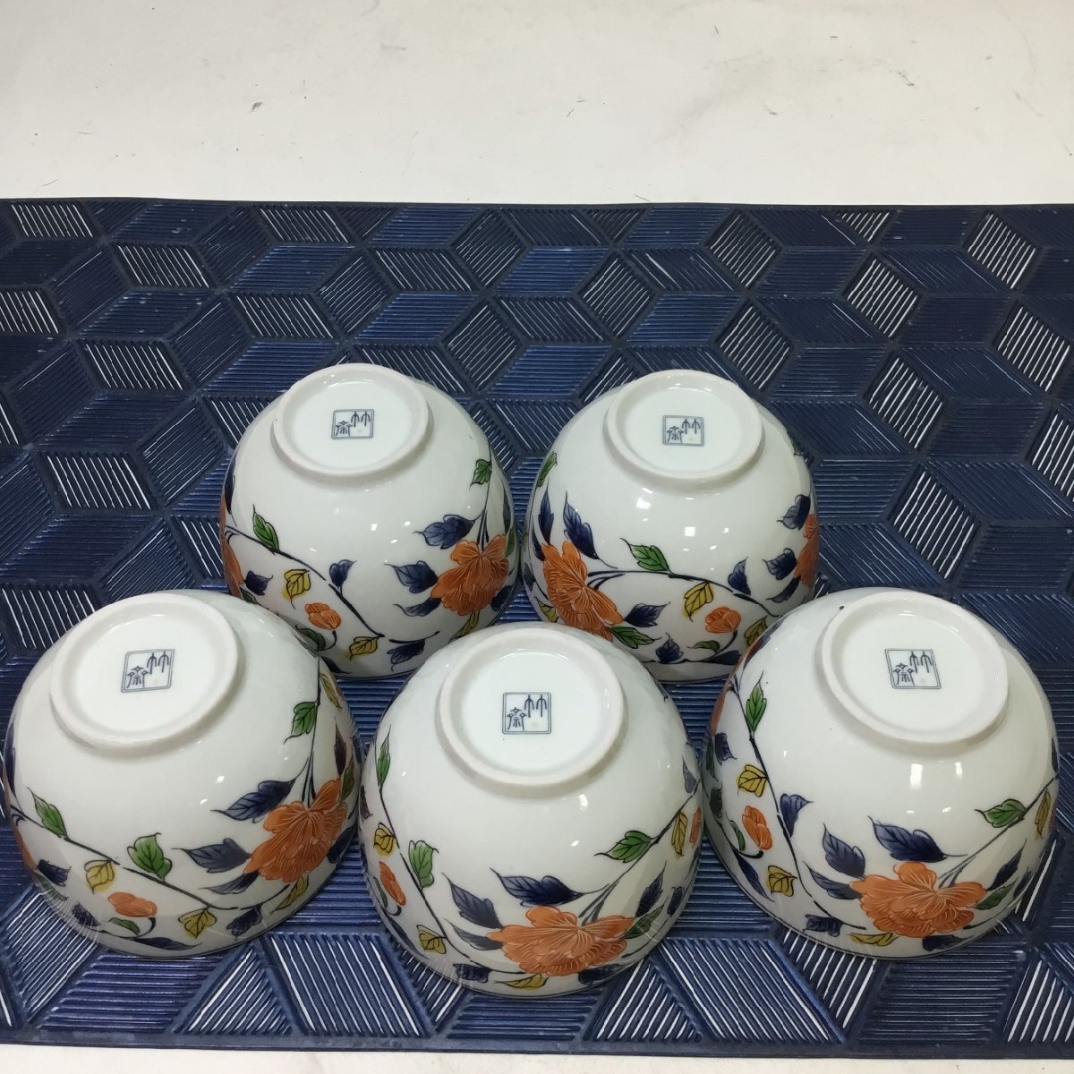 Product name: 【中古/長期保管品/CH】三洋陶器 林斎 湯呑 湯飲み 花柄 蓋無し 茶器 径約8cm 5客セット 陶器 和食器 MZ0519