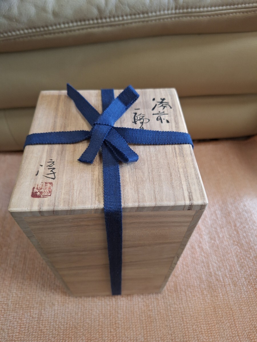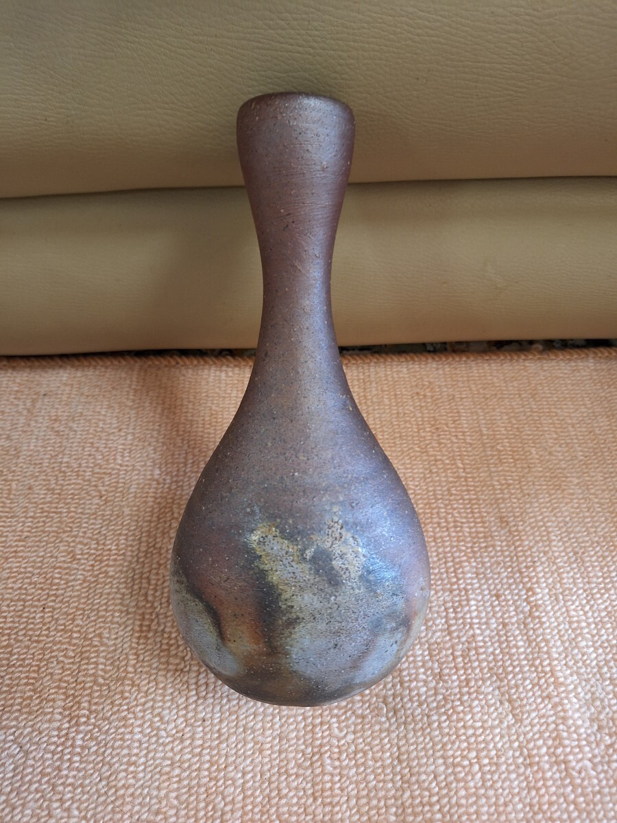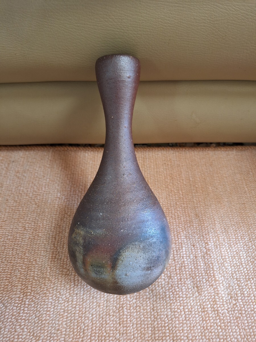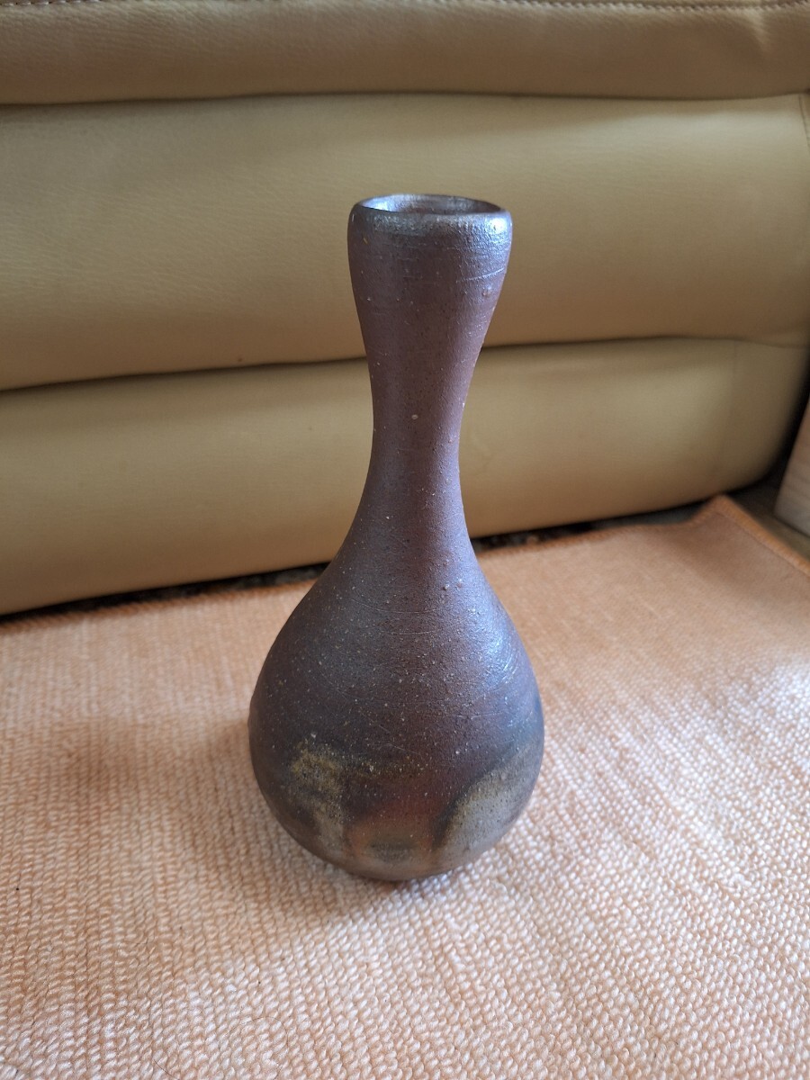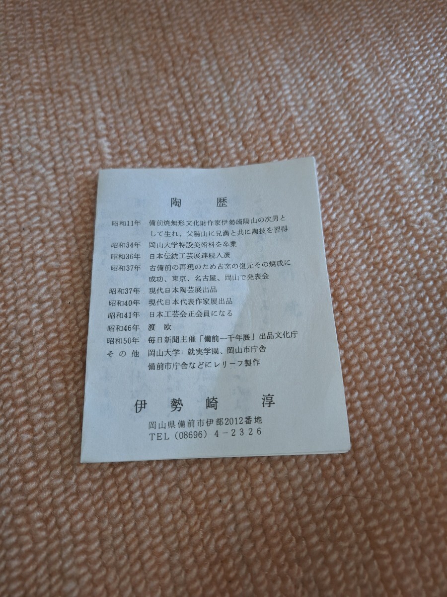備前焼、重要無形文化財、伊勢崎淳、一輪生です。高さ約23cm、胴一番広いところ約11cm、栞、共箱入りです。