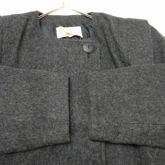 サンテスプリ ウールコート ノーカラー 比翼ボタン 肩パット 黒 ブラック 長袖 ウール ウール混 ショート丈