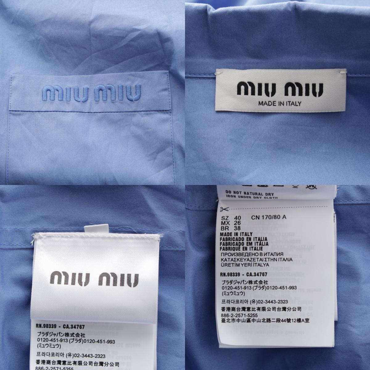 Product name: ミュウミュウ 24年 コットンポプリン ロゴ刺繍 パジャマシャツ シャツジャケット 長袖シャツ MK1884 F0013 ブルーアズーロ 40【中古】