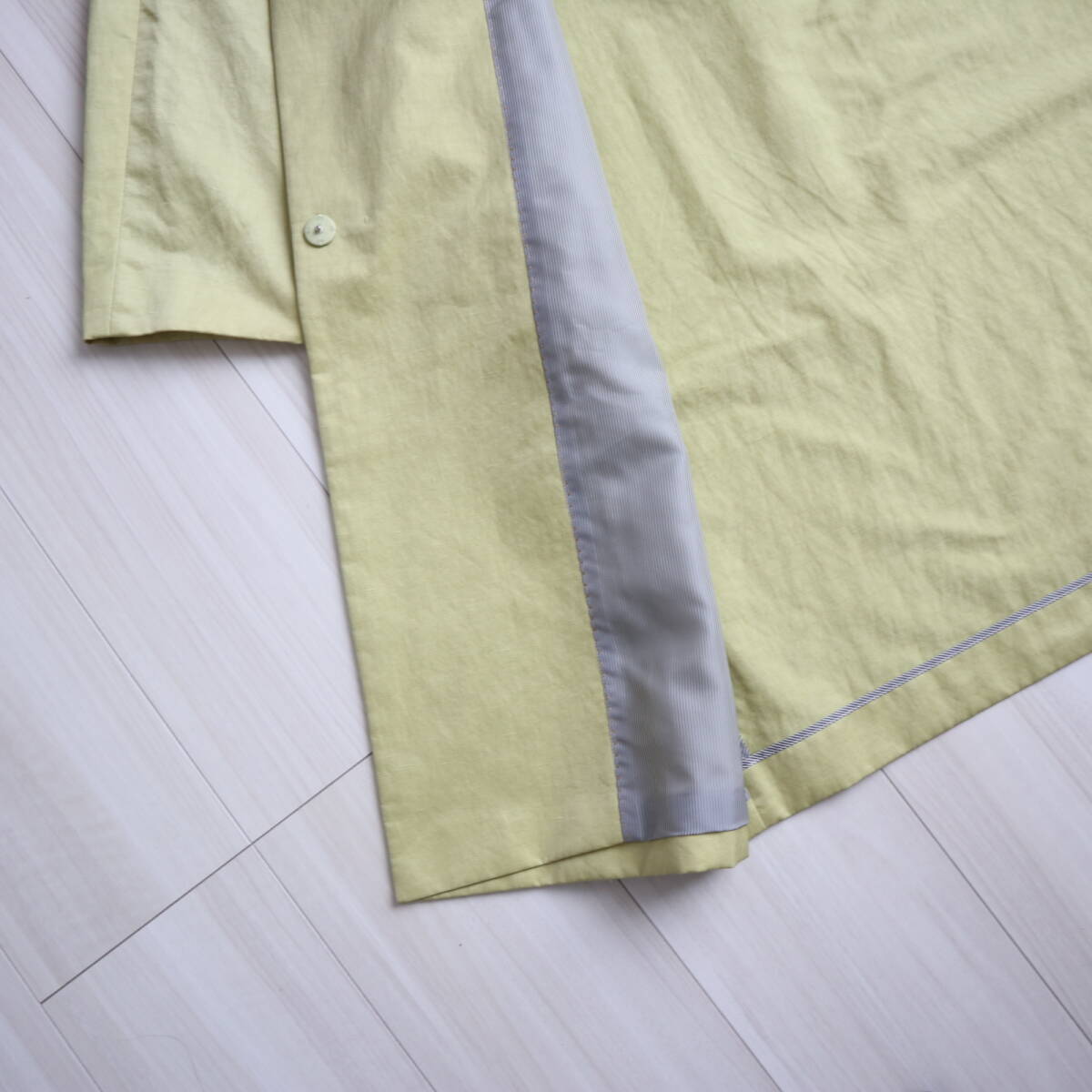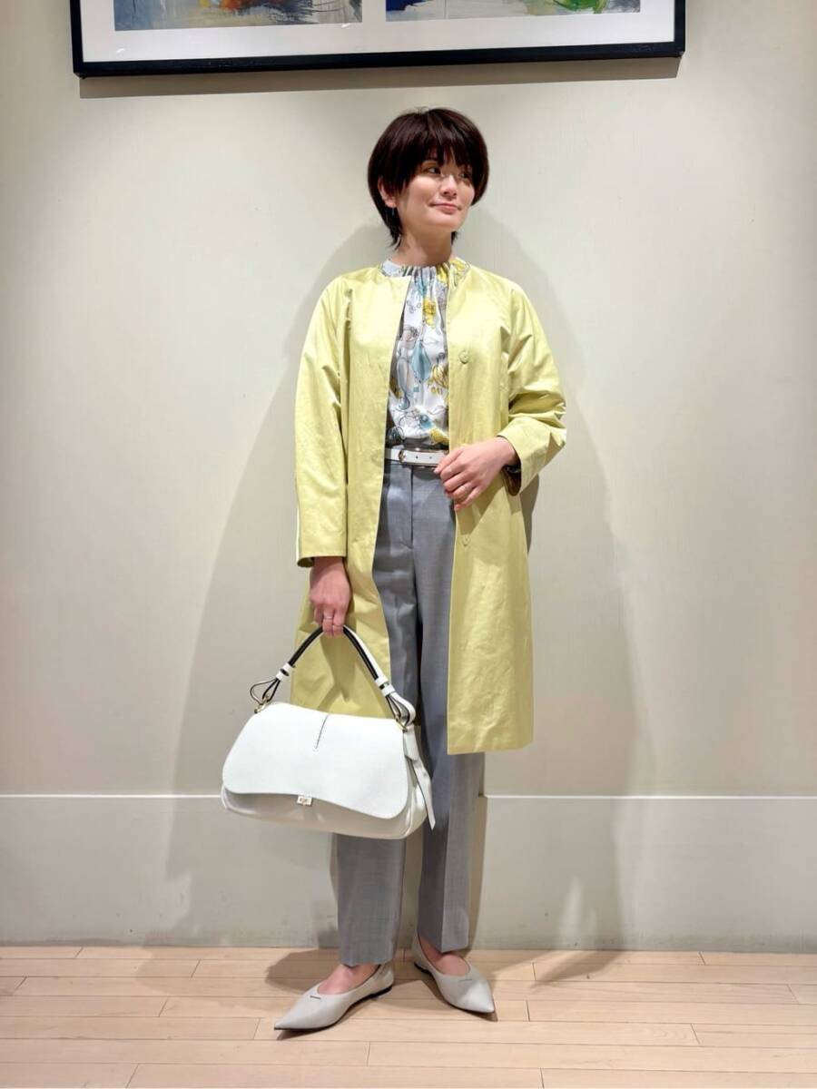 定番人気の、繊細な光沢が特徴の上質なインポート素材を使用したノーカラーコート。リネン混ならではのハリとナチュラルな表面感でクリーンな雰囲気を演出しています。