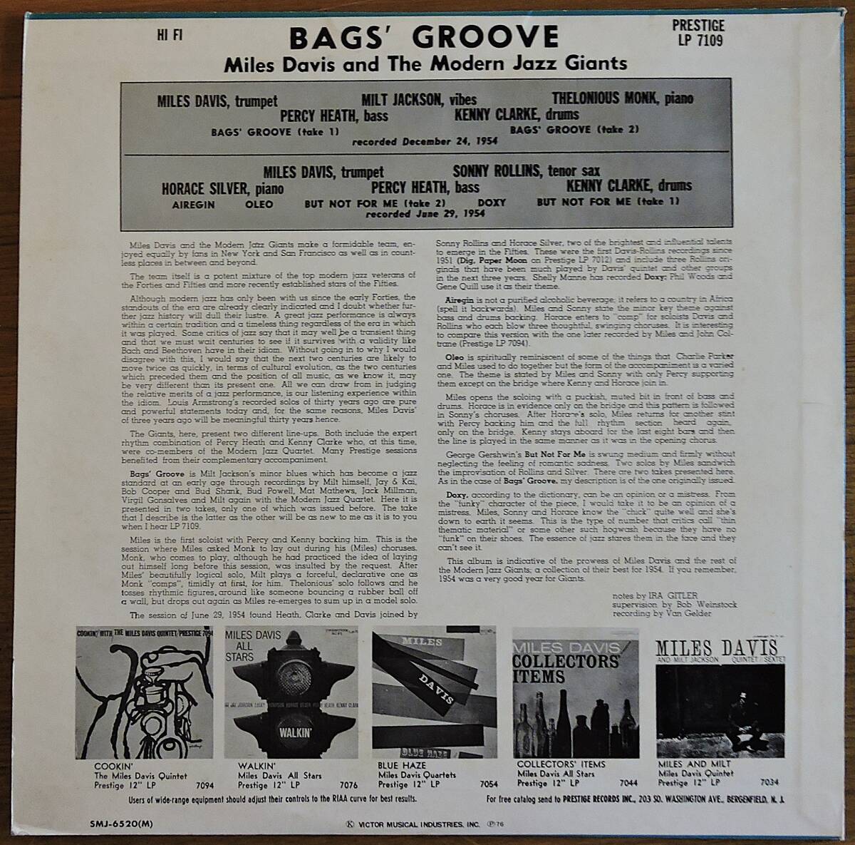 MILES DAVIS マイルス・デイビス/BAGS GROOVE PRESTIGE 7109 / Sonny Rollins, Thelonious Monk 送料無料