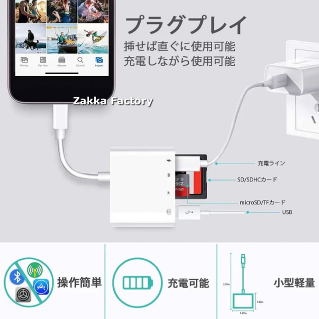 Product name: 4in1 iphone ipad SDカードリーダー 画像 写真 動画 データ保存 データ転送 SDカード リーダー iPhone14 13 12 11 X 8