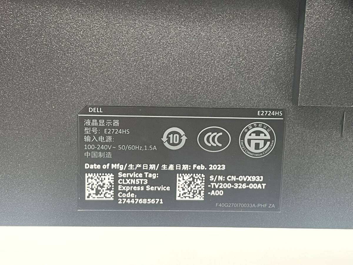 Product name: Dell E2724HS ワイド液晶モニター 27.01インチ フルHD(1920x1080)D-Subx1/HDMI1.4x1/DisplayPort1.2x1 ケーブル付属 動作品