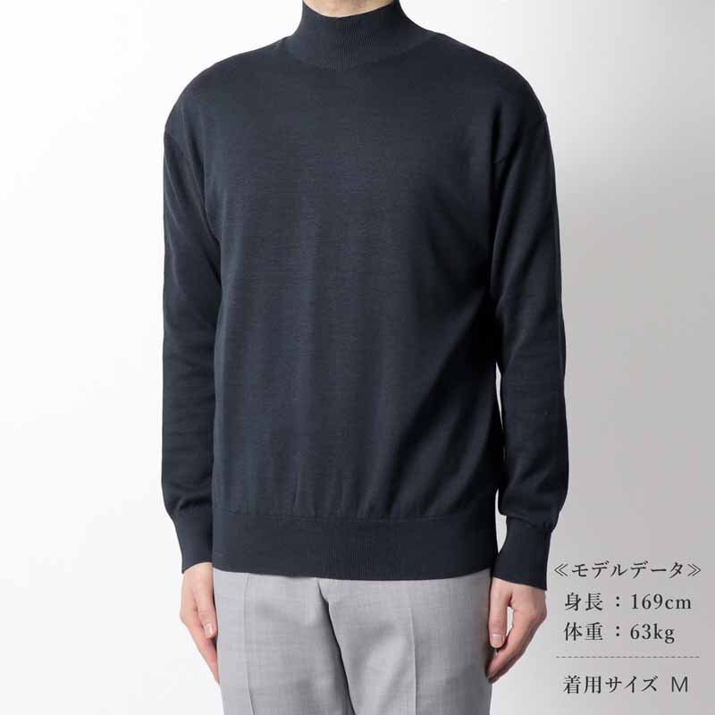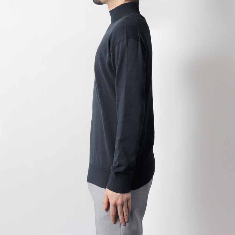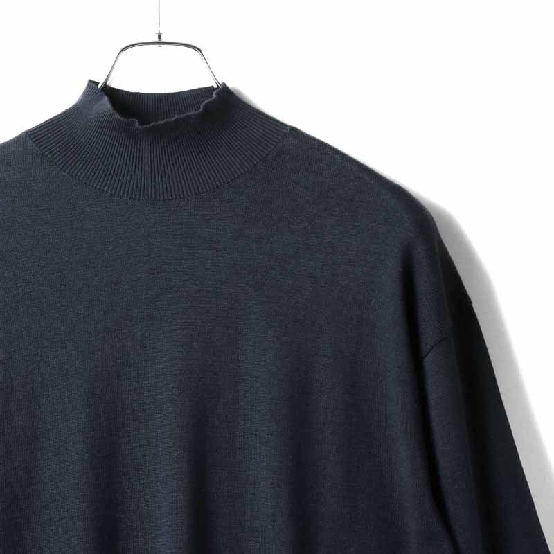 ・綿花の頂点に君臨するシーアイランドコットンを使用した、モダンな雰囲気のハイゲージモックネックニット。