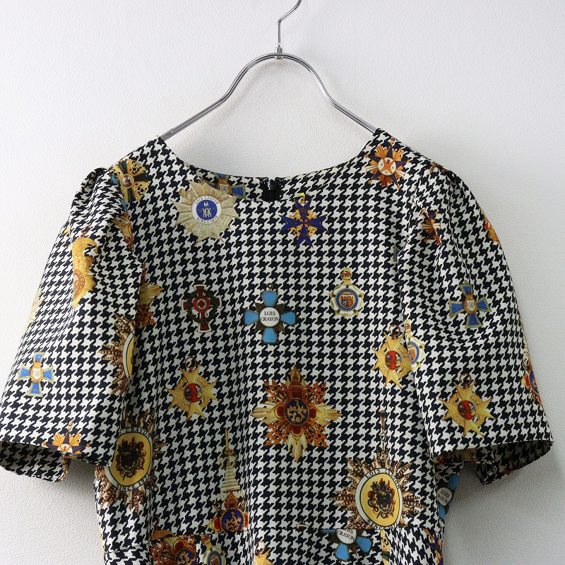 Product name: 2021AW ロイスクレヨン Lois CRAYON 千鳥 エンブレムプリントワンピース M/ブラック フレア 半袖 ドレス【2400014358001】