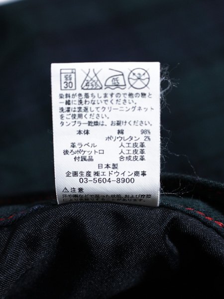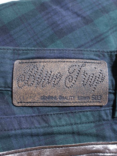EDWIN エドウィン ブルートリップ チェック デニム風 ローライズ ストレート 綿パンツ S