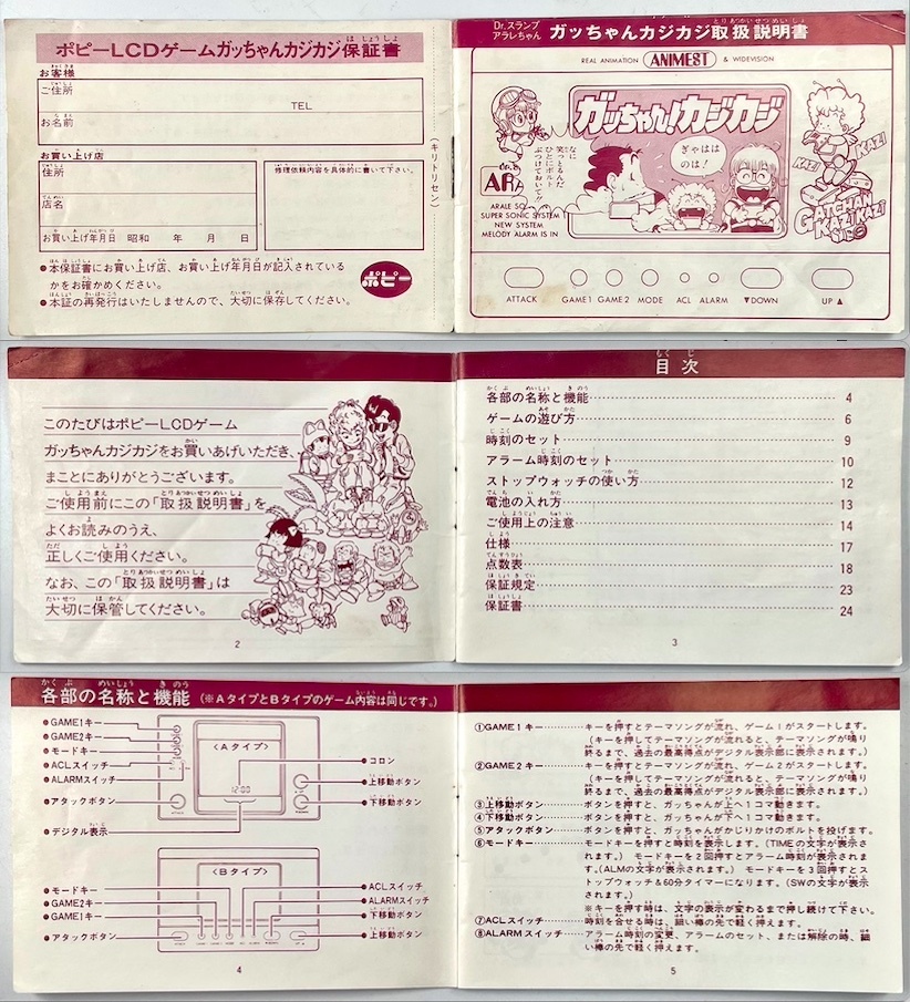 ポピー Dr.スランプ アラレちゃん「ガッちゃんカジカジ」液晶ゲーム(AR-02/Bタイプ/LCD GAME/取説付/1982年/昭和57年/レトロ/JUNK)