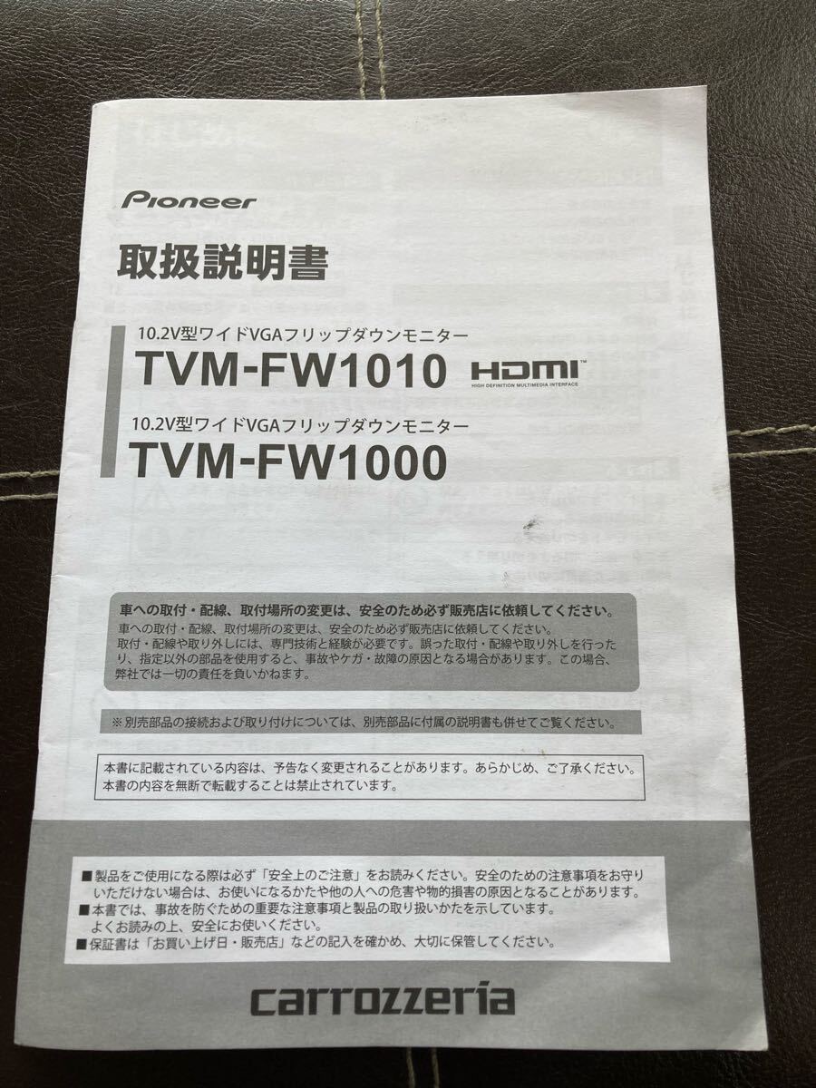 Product name: カロッツェリア フリップダウンモニター TVM-FW1010 リモコン欠品 説明書あり
