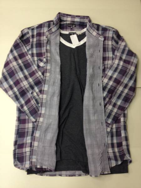Product name: b144 新品 4LB 紫系チェック柄シャツ+半袖Tシャツセット 綿100%